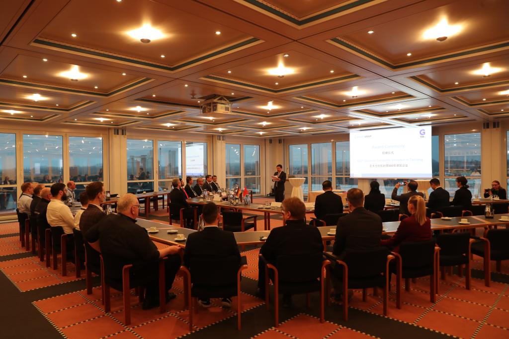 ??1月22日,中國江蘇省太倉市在德國北威州貝庫姆市為落戶的第500家德企伯曼集團(tuán)舉行授牌儀式。新華社記者 杜哲宇 攝