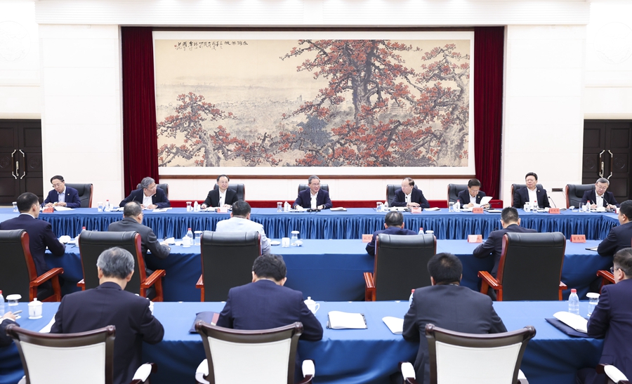 ??4月18日,國務院總理李強在第135屆中國進出口商品交易會(廣交會)企業(yè)館巡館。這是4月17日,李強同廣交會參展企業(yè)代表座談交流。新華社記者 黃敬文 攝