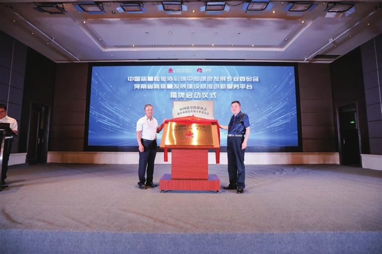 中國質(zhì)量檢驗協(xié)會碳中和綠色發(fā)展專業(yè)委員會河南省高質(zhì)量發(fā)展建設(shè)標準創(chuàng)新服務(wù)平臺揭牌。