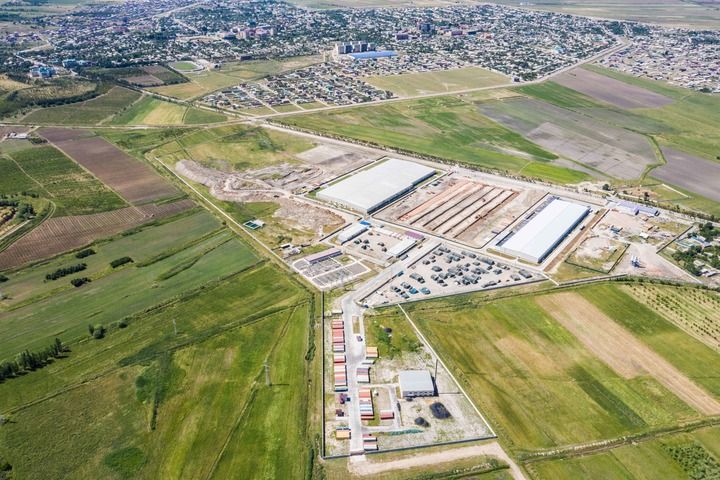 ??這是2019年5月21日在塔吉克斯坦丹加拉拍攝的中泰紡織廠(無(wú)人機(jī)照片)。新華社記者 張若玄 攝