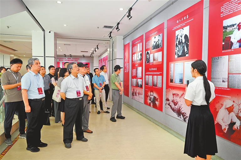 7月30日,全國多地的經(jīng)濟(jì)媒體負(fù)責(zé)人來到河南開封科技傳媒學(xué)院,參觀“勿忘人民——學(xué)習(xí)穆青、增強(qiáng)‘四力’”主題展。 河南日報社全媒體記者 朱哲 攝
