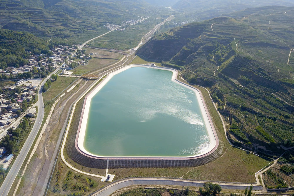 ??這是2021年9月8日在甘肅省天水市拍攝的引洮供水工程楊家灣調(diào)蓄水池(無人機(jī)照片)。新華社記者 范培珅 攝