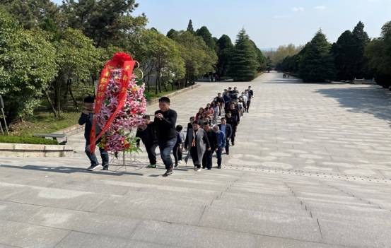 站在革命英雄紀念碑前,全體人員整齊列隊,莊嚴肅穆,向革命烈士鞠躬默哀。